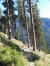 Der nahezu weglose Pfad bringt mich hinein in den Bergwald. Der Aufacker liegt nordwestlich, Eschenlohe östlich. Da ich keine Lust habe, dauernd navigieren zu müssen, laufe ich weiter runter in Richtung Talstation Oberammergau.