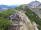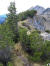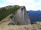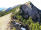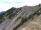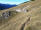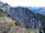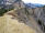 Zu den Wurzeln gesellen sich alsbald kleine felsige Abschnitte, aber auch die sind links gut zu umgehen. Das letzte Stückchen laufe ich wieder, weil das Grasband am Kamm entlang - mal schmal, mal breit - , trocken ist. Auch hier bleibe ich stehen und gucke in die Tiefe und zurück auf den Grat, der mich hierher gebracht hat.