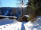 Oben angekommen fegt der Wind über den flachen eisigen Gipfel. Glasklar die Berge, verweht die Spuren in Richtung Wäldchen. Die Kapuze knattert in meinen Ohren, während ich mich gegen den Wind stemme. Schneeverwirbelungen im Gegenlicht der Sonne. Naturgewalten in ansonsten friedlicher Umgebung.