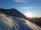 Länger als eine viertel Stunde verweile ich nicht, weil es trotzt Sonne kalt ist und ich meine Füße kaum noch spüre. Also muss wieder Bewegung rein. Den Sonnenuntergang werde ich unterwegs noch treffen, läuft mir ja nicht davon. Ich laufe den Berg hinunter und hinüber zum Vorgipfel.