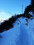 Glücklicherweise treffe ich kurz vor der Abzweigung zwei Männer, die den Kratzer hoch und den Sommerweg runter sind. Ob ich Grödeln hätte? Nein aber Spikes. Geht schon, meinten sie, ist ja auch der schönere Aufstieg.