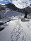 Am Miesingsattel beginnt der Downhill, erstmal durch tiefen Schnee runter zur Kleintiefental Alm. Ein älterer Herr kommt mir entgegen, fragt, ob ich vielleicht eine optische Brille gefunden hätte. Er weiß noch genau, wo er sie Montag verloren hat, zwischen diesem Sattel und dem (weit) dort drüben. O je! Ich wünsche ihm viel Glück und würde mein Pfeifchen am Trinkrucksack bemühen, wenn ich sie finden sollte.