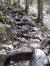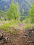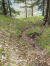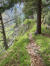 Noch ein Geröllfeld gequert, und ich erreiche den Abzweiger hinunter zum Anton-Karg-Haus. Steil geht es hinunter, unterwegs war hier wohl lange keiner mehr. Eine dicke Schicht aus trockenem Laub erschwert das Laufen. Nix flowiger Downhill. Dann die nächste Tafel. Links Anton-Karg-Haus. Rechts zweigt ein sehr schmaler Singletrail ab, allerdings nicht ausgeschildert. Schau’n mer mal, wo er hinführt.