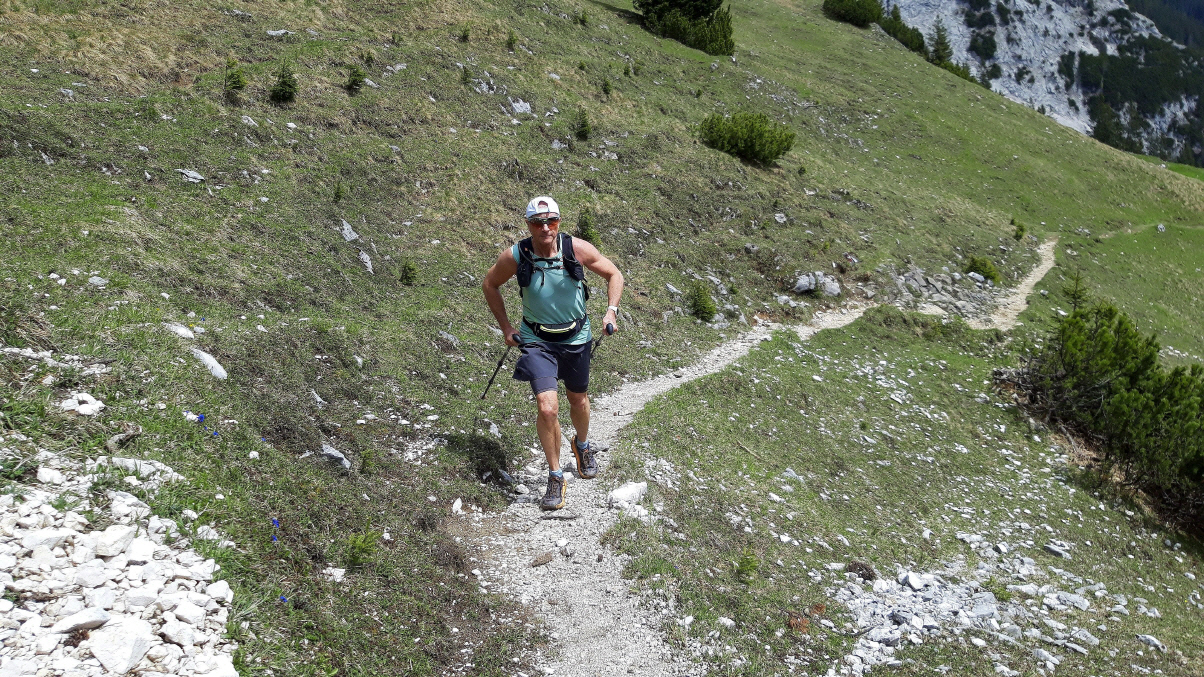 Heftig dann der Prolog, steile 1200hm vom Kaiseraufstieg hinauf aufs Petersköpfl (1745m). Schon einmal stand ich auf diesem Gipfel, als ich im Oktober 2018 den Zahmen Kaiser überschritten habe.