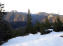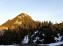 Von der Alm ein Stück runter und über eine leicht vereiste Holzbrücke, dann rauf zum Graseck. Von dort bis zum Gipfelaufbau sehr schrofig. Einhundert Meter über weichen Schnee. Der Schildenstein taucht auf und zeigt sich in warmen Farbtönen. Wenigstens ein bisschen Romantik, die ich bis jetzt leider vermisst habe.