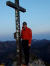 Ein paar Mal die Hände zu Hilfe genommen, und ich stehe auf dem Gipfel, allein. Zwar in der Sonne, aber auch hier keine richtige Stimmung. Der Horizont eher grau. Dafür Ruhe und ein tiefes Gefühl des Friedens. Fein der Blick auf den Blaubergkamm und den Guffert. Mein Blick schweift hinüber zum Achensee und ins Rofan. Schön zu sehen der Zacken der Hochiss, meine vorletzte Runde.