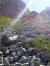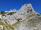 Da die Runde heute kurz ist, verweile ich eine halbe Stunde dort oben und schaue mich um. Heiß brennt die Sonne hernieder, bei Windstille. Ringsherum graue, scharf gezackte Felstürme oberhalb riesiger Geröllhalden.