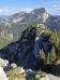 Der Wald lichtet sich und ich erreiche die Bergwirtschaft Hubertushütte. Hemden hängen zum Trocknen über den Zaun; niemand zu sehen. Das zweite Weißbier fällt auch aus. Dafür schöner Blick auf den felsigen Gipfel, beleuchtet durch die späte Nachmittagssonne.