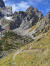 Steil geht es weiter bergan. Nach 5,8km lande ich auf einem Sattel, von dem ich zunächst dachte, es sei schon die Torscharte. Nach dem Sattel geht es kurz bergab, bevor es zum finalen Aufstieg nochmal richtig steil wird. Hier alles trocken. Ein Trailrunner kommt mir entgegen.