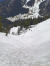 Sie jedenfalls würden hier weitergehen, weil sie Angst davor hat, dass die Querung weiter unten lawinengefährdet sei. Die Gefahr sehe ich heute nicht und mache mich an den Abstieg. Die Spur im Hang ist gut zu sehen und bald balanciere ich quer hinüber …