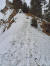 Auch sehe ich eine schmale Spur hinauf, die aussieht, als wäre jemand mit einem Poporutscher runtergerutscht.