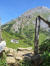 Mich loszureißen fällt mir schwer und ich beginne den Downhill hinunter zum Binssattel. Mein nächstes Ziel ist schon zu sehen, der Gramai-Hochleger. Unterwegs ein unbeschildeter Abzweiger, von dem ich annehme, dass es der direkte Weg zum Hochleger ist. Ich bleibe auf Kurs und erreiche nach dem Binssattel auf einem feinen Pfad über ein Almgelände die bewirtschaftete Alm, den Gramai-Hochleger. Eine Labestation beim Karwendelmarsch.