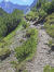 Nach einer kurzen Rast laufe ich weiter, erreiche ein Gatter und erinnere (von meiner Sonnjochtour), dass es danach steil und sehr bröselig weiter runter geht. So wie im Oktober frage ich mich auch heute, wie machen es nur die guten Trailrunner beim Karwendelmarsch, die da locker runter laufen, als wäre da nichts.