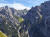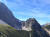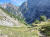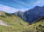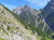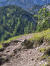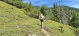 Noch zwei Wanderpärchen und ein Herr genießen die Aussicht, sonst nicht viel los heute. Der Blick hinunter auf den vor mir liegenden Pfad verheißungsvoll, die Bergflanken fantastisch. Fein windet sich der Trail hinunter, manchmal steil und etwas bröselig, insgesamt aber unschwierig.