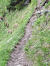 Zunächst auf einem Wirtschaftsweg bis zum Abzweiger. Von Anfang an steil windet sich der Pfad im kühlen Bergwald hinauf und zieht zum Ende hin weiter an. Immer wieder Abschnitte entlang steiler Hänge und über erodierte Pfade. Das war 2016 noch nicht so krass.