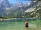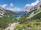 Diese teilt sich auf in drei unterschiedliche Untergründe und Landschaften: Erstmal kurz runter zum Drachensee. Dann auf einem steilen schmalen Pfad auf Schotter rauf zu einer grasigen Ebene auf gut 2000m, auf der Schafe weiden. Eine optische Oase in dieser rauen Bergwelt.