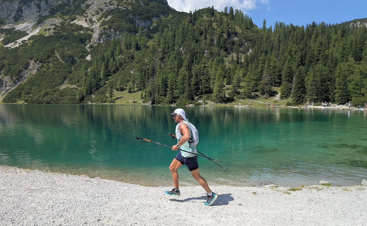 Wie so oft wird der Trail erst ab der Baumgrenze bei 1700m zahmer und laufbarer. Dennoch rutsche ich in einer Kurve weg und verdrehe mir mein rechtes Bein. Dank meiner regelmäßigen Mobilisierung meiner Hüfte (Bandgeführte Distraktion) kann ich wenige Minuten später wieder beschwerdefrei Laufen.