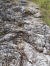 Ich laufe wieder zurück, passiere erneut vorsichtig eine ausgewaschene Stelle mit Brösel, laufe noch ein Stück hoch und gucke wieder aufs Navi. Jetzt bin ich wieder viel zu hoch. Hä! Wo ist der verdammte Abzweiger? Diesmal zurück in Zeitlupe. An der ausgewaschenen Stelle stehe ich genau am Knick. Aha, den Pfad hat es weggewaschen.