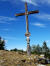 Schade, dass die Schönfeldalm nicht bewirtschaftet ist. In der Sonne gelegen mit Breitbandkino. Jetzt aber pfeift der Wind derart, dass ich Mühe habe, in die Ärmel meiner Windjacke zu schlupfen. Vorbei an einem kleinen Kreuz ziehe ich mich auf einem mit großen Steinen übersäten Hang weiter hinauf und erreiche über einen Grasrücken das große Heimkehrerkreuz.