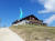 --------------------------------------------- Hier die Etappen meiner 17,5km langen Runde, unterlegt mit 1250hm (Daten meiner GPS-Uhr): Wankbahn (730m) – St. Anton - Tannenalm (950m)– Eckenhütte (1055m) – Gipfel (1780m) – Wankröhre (1622) - Runter Richtung Esterbergalm – Hüttlsteig – Wank-Mittelstation – Klettergarten – Wankbahn. Runde hier auf Brouter.de---------------------------------------------- Sonnenexponiert geht es weiter in zahlreichen Kehren und über viele Stufen mit Holzbohlen hoch zur Bergstation, die heute geschlossen hat. Offen dafürdas Wankhaus, wenngleich wenig besucht. Gleich daneben das Gipfelkreuz. Wenig weiter das hässliche DARC CO3 Relais. Wohl wichtig, aber der Platz! Überhaupt ist der Wank oben mehr ein Spielplatz als Natur.