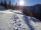 Oben angekommen fegt der Wind über den flachen eisigen Gipfel. Glasklar die Berge, verweht die Spuren in Richtung Wäldchen. Die Kapuze knattert in meinen Ohren, während ich mich gegen den Wind stemme. Schneeverwirbelungen im Gegenlicht der Sonne. Naturgewalten in ansonsten friedlicher Umgebung.