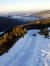 Länger als eine viertel Stunde verweile ich nicht, weil es trotzt Sonne kalt ist und ich meine Füße kaum noch spüre. Also muss wieder Bewegung rein. Den Sonnenuntergang werde ich unterwegs noch treffen, läuft mir ja nicht davon. Ich laufe den Berg hinunter und hinüber zum Vorgipfel.