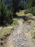 --------------------------------------------- Ärgerliches: Anfang des Jahres kaufte ich mir den HOKA ONE ONE Speetgoat 5. Ende Mai lief ich ihn das erste Mal. Nach nichteinmal 200km lösten sich an beiden Schuhsohlen die einzeln verklebten Profilteile im Fersenbereich. Das war beim Vorgänger, dem 4er, auch so, immerhin haben die 400km gehalten. Wenn ich jetzt reklamiere, bekomme ich qualitativ nochmal so einen Sch… dreck. Ich suche nach einer anderen Lösung und werde fündig: Schuster Seidl in München Schwabing repariert auch Laufschuhe. Für 30.- Euro inkl. Trinkgeld habe ich jetzt wieder einen funktionsfähigen Trailschuh – siehe Foto -, der sich heute bewährt hat. ---------------------------------------------- Der angekündigte starke Wind blieb aus, ich verweile und mache Mittag. Nassgeschwitzt fühle ich mich dennoch unwohl und mache mich wieder auf. Vorbei an den seilversicherten Felswänden erreiche ich bald den Abzweiger: Weißenbachsattel/Weißenbachalm. Toller Blick hinunter. Ebenso der Pfad.