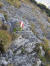 Weiter in Richtung Gipfel geht es steil an felsigen Wänden vorbei, die mit einem Drahtseil ausgestattet sind. Die helfen – vor allem runter – vor lästigem Wegrutschen. Kurz darauf eine kleine unschwierige Kletterei über eine Felsstufe; auch hier Drahtseile. Noch eine Querung unterhalb von Felswänden und ich erreiche den gras- und latschenbewachsenen Bergrücken des Bärenkopfs.