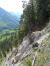 Noch ein Geröllfeld gequert, und ich erreiche den Abzweiger hinunter zum Anton-Karg-Haus. Steil geht es hinunter, unterwegs war hier wohl lange keiner mehr. Eine dicke Schicht aus trockenem Laub erschwert das Laufen. Nix flowiger Downhill. Dann die nächste Tafel. Links Anton-Karg-Haus. Rechts zweigt ein sehr schmaler Singletrail ab, allerdings nicht ausgeschildert. Schau’n mer mal, wo er hinführt.