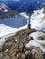 Anstrengend ist der Eiertanz mit Einsinken, mein Puls geht kaum unter die 150 Schläge. In Serpentinen geht es den nochmals steiler werdenden Hang hinauf. Die Aussicht allerdings …