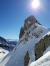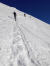 Noch ein gutes Stück laufe ich über weicher werdenden Schnee, dann beginnt der steile Anstieg hinauf zur Rofanspitze; und der Tanz auf Eiern.