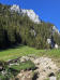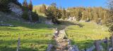Bald wird der Pfad flowig und ich erreiche die Bucheralm. Geschlossen. Natürlich. Kein Weißbier heute. Dafür Wasser aus der Trinkblase. Wie gehabt. Um ehrlich zu sein, ich trinke nie alkoholfreies Weißbier auf meinen Runden. Einmal im Karwendel auf der Falkenhütte hatte ich es getan, das Blubbern im Bauch nahm kein Ende.