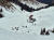 Mit den beiden Mädls mache ich mich auf, den harschigen Hang hinunterzulaufen. Die eine rodelt mit ihrem Rucksack und Hund im Rücken hinunter. Die andere und ich nehmen die Dirett … - ihr wisst schon – unter die Füße; immer schön rein mit der Ferse und aufrecht geht es 300hm flott hinunter.