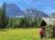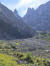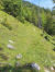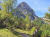 Flach geht es weiter inmitten sattem Grün, bald über ein ausgetrocknetes Flussbett und gleich gegenüber rein in den Zauberwald mit seinem lockeren Baumbestand, der immer wieder den Blick frei gibt auf die Bergspitzen vor mir. Nach zwei Felsblöcken wird es steiler und ich lande auf einer Schuttreiße.