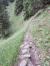 Zunächst auf einem Wirtschaftsweg bis zum Abzweiger. Von Anfang an steil windet sich der Pfad im kühlen Bergwald hinauf und zieht zum Ende hin weiter an. Immer wieder Abschnitte entlang steiler Hänge und über erodierte Pfade. Das war 2016 noch nicht so krass.