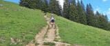 Von meiner ersten Runde hier mit Christian im September 2016 weiß ich, dass der Weg zum Brunnenkopf ein ekelhaft langer, holpriger Wirtschaftsweg ist. Die Kröte, die heute zu schlucken ist. Ich schlucke sie am späten Nachmittag im Downhill und laufe rechts hinauf.